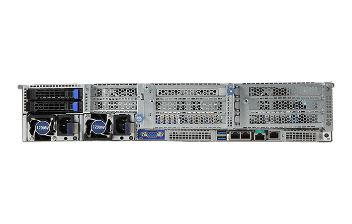 支持 8 個 PCI-E 插槽,以及 2 個專用 OCP 端口。