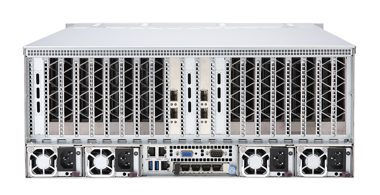 配置 10個PCI-E4.0 插槽,提供先進擴展能力,并可搭配 100G 以太網卡和 400G Infiniband 網卡;提供先進 IO 吞吐能力。